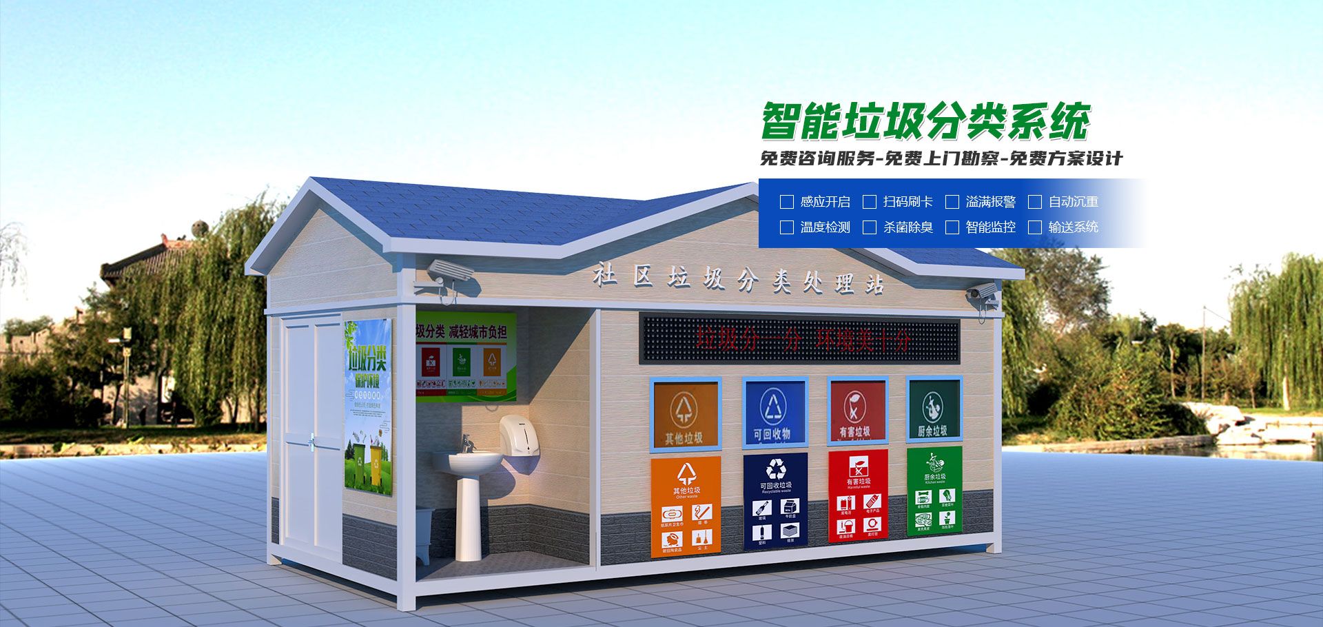 公司秉持“綠水青山就是金山銀山”理念,匯集全球生態(tài)環(huán)保智慧,聚焦環(huán)保細(xì) 分領(lǐng)域:生活垃圾分類(lèi)、餐廚垃圾處理、生活垃圾處理、餐飲油水分離、污水處理、空氣凈化、生物科技,以及企業(yè)肩負(fù)的社會(huì)責(zé)任,力推生態(tài)文明建設(shè);產(chǎn)品廣泛應(yīng)用于學(xué) 校、醫(yī)院、部隊(duì)、企事業(yè)單位食堂,大型酒店、商業(yè)綜合體、農(nóng)貿(mào)市場(chǎng)、以及美麗鄉(xiāng)村 (社區(qū))建設(shè)、美好家庭建設(shè)等各個(gè)領(lǐng)域。
